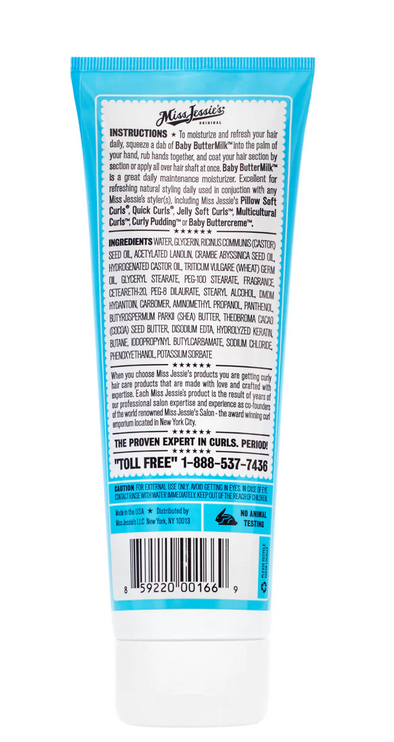 Honestly, Baby Butter Milk was created to hydrate and moisturize dry, brittle curls, kinks and waves without the greasy residue. Locks in moisture. Superb shine. Excellent lightweight coating. Will help cut down frizz. A great detangler for knots and kinks. Fortifies and moisturizes dull, lifeless curls. This marvelous Baby Butter Milk will smooth out and moisturize your curls, kinks, and waves and will give your hair more elasticity and spring. There's bounce in this baby's every buttery ounce.